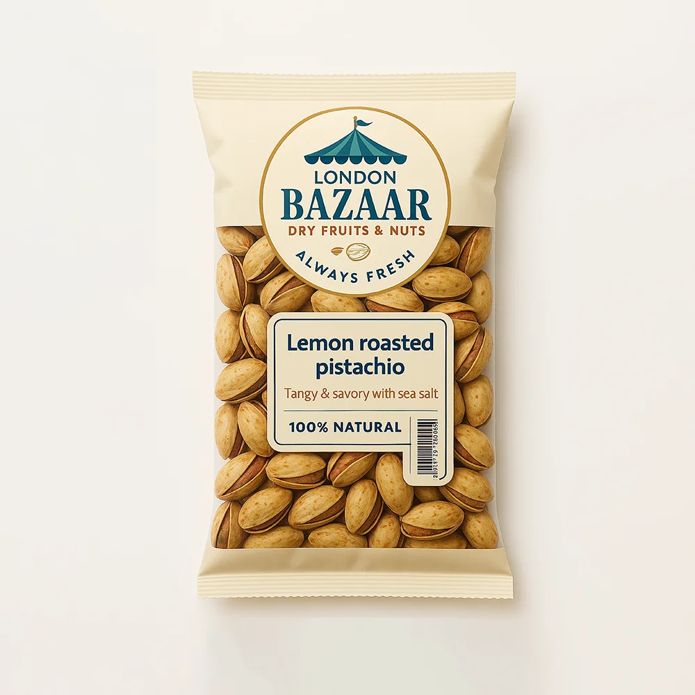 Perfect for snacking, entertaining, or pairing with your favorite drinks, London Bazaar Lemon Pistachios deliver a gourmet experience that’s zesty, crunchy, and utterly satisfying.