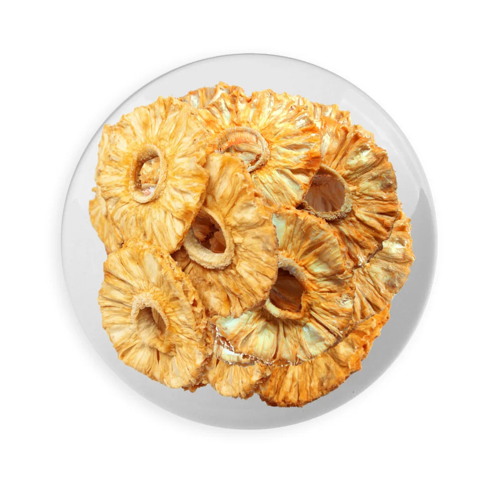 Enjoy the tropical sweetness of our Organic Pineapple Rings – naturally dried and free from added sugars, preservatives, or artificial colors. Made from ripe, organic pineapples, these chewy golden rings are a delicious and healthy snack rich in vitamin C, fiber, and natural enzymes. Perfect for snacking, baking, or adding to granola and trail mixes.